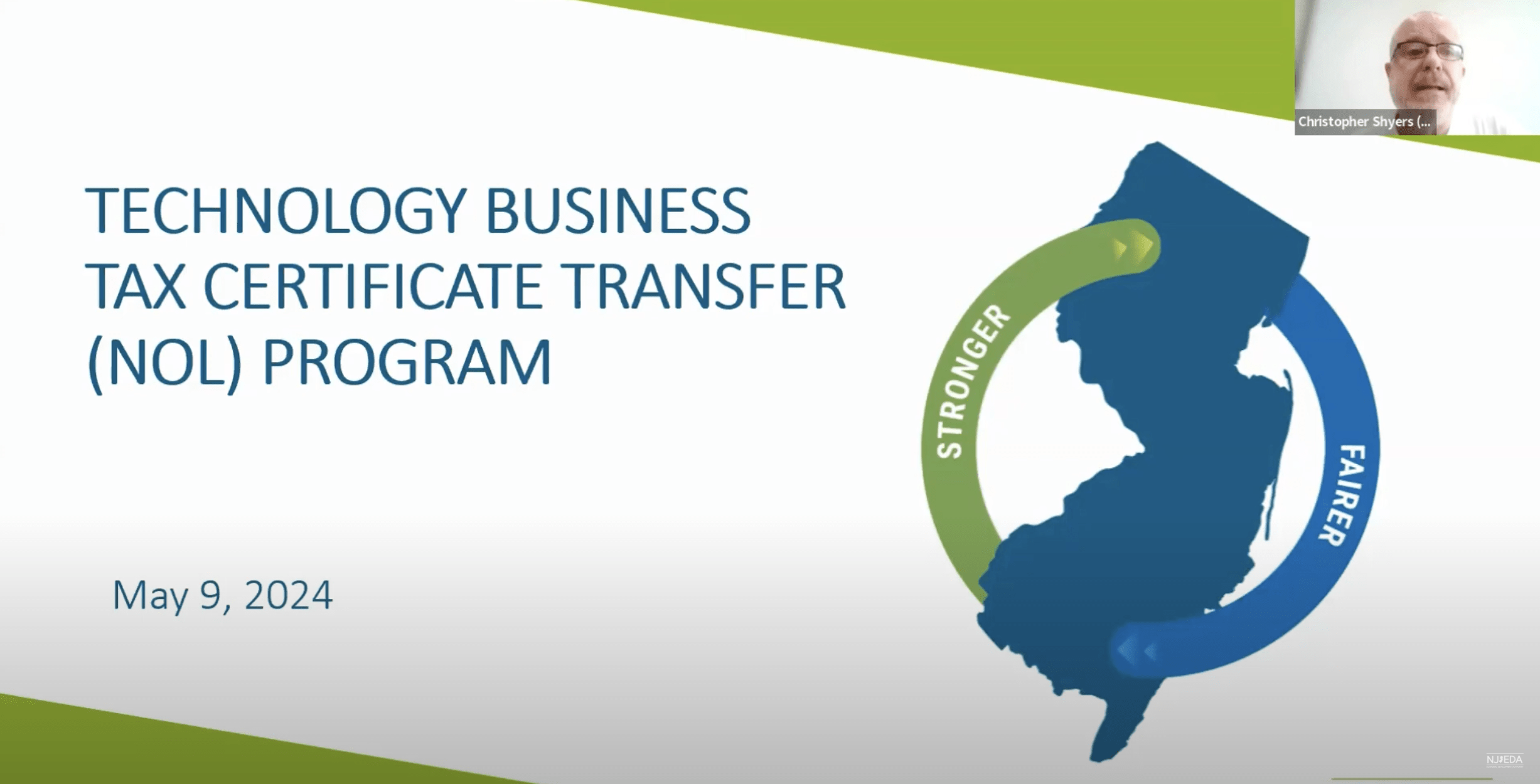 The Technology Business Tax Certificate Transfer Program enables qualified, unprofitable NJ-based technology or biotechnology companies with fewer than 225 US employees (including parent company and all subsidiaries) to sell a percentage of net operating losses (NOL) and research and development (R&D) tax credits to unrelated profitable corporations.
